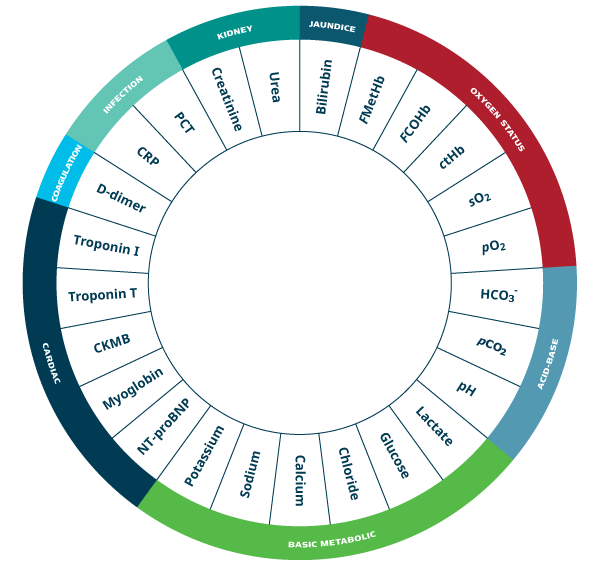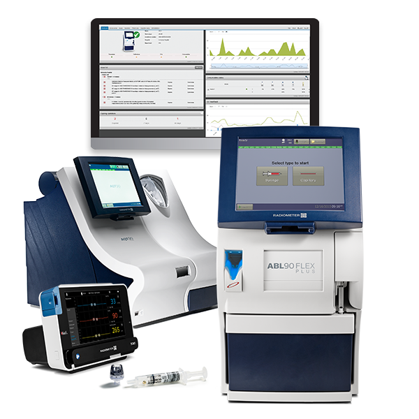 In addition to 19 critical blood gas parameters and 9 biomarkers, Radiometer offers seamlessly connected blood testing analysers, transcutaneous monitors, and a point-of-care IT solution that automate and simplify blood sampling and data capture with: