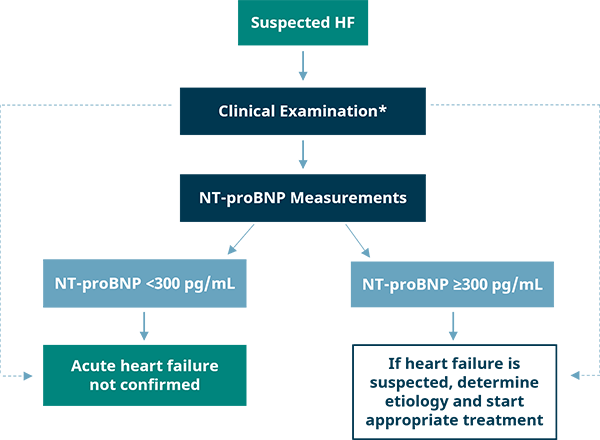 Heart failure can be ruled out faster with NT-proBNP testing in conjunction with the clinical evaluation than without an NT-proBNP test [15].
